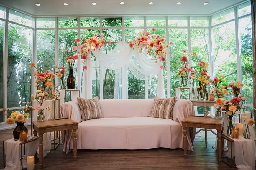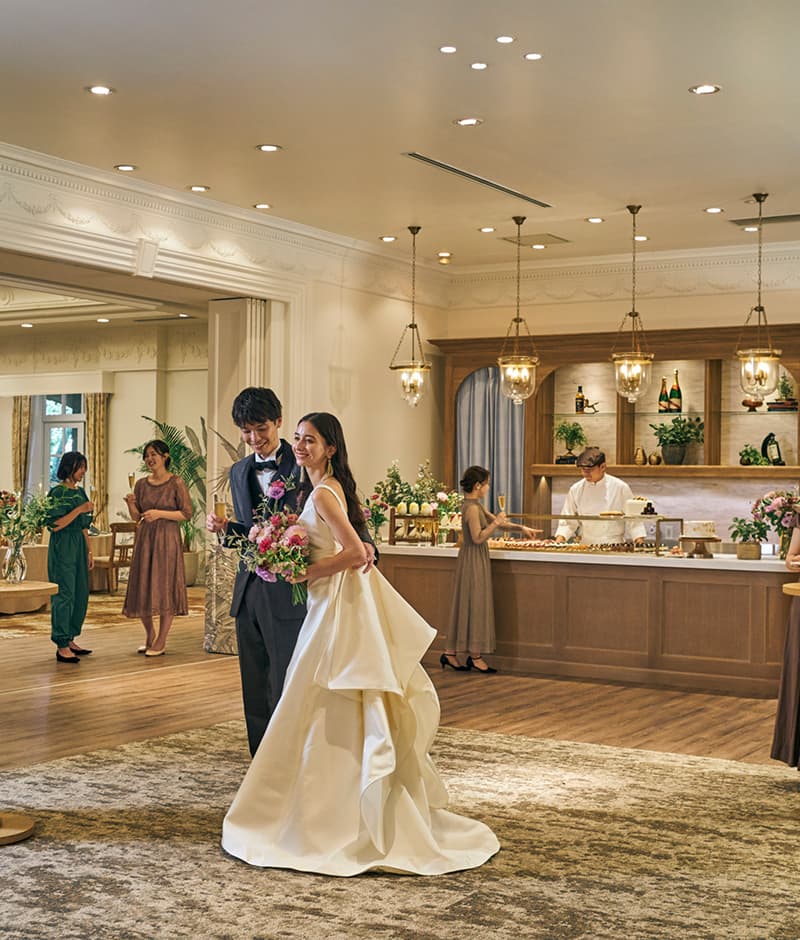 披露宴会場に隣接し、デザートブッフェやフォトスポット、ライブ演奏、展示スペースなど、アイデア次第で使い方は自由自在。よりカジュアルにゲストと過ごせる場として人気です。