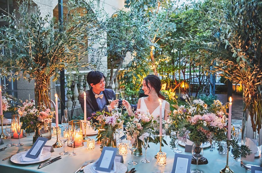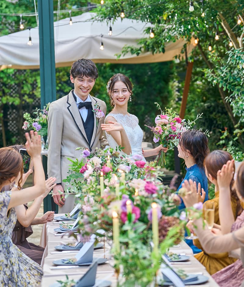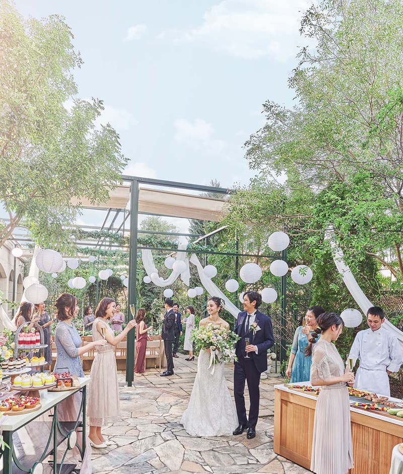 フラワーシャワーやバルーンリリースなど、空の下ならではの演出が可能です。季節ごとに異なる表情を見せるガーデンは、どの瞬間も特別な背景に。写真映えはもちろん、ゲストとの距離も近い、あたたかな空間です。